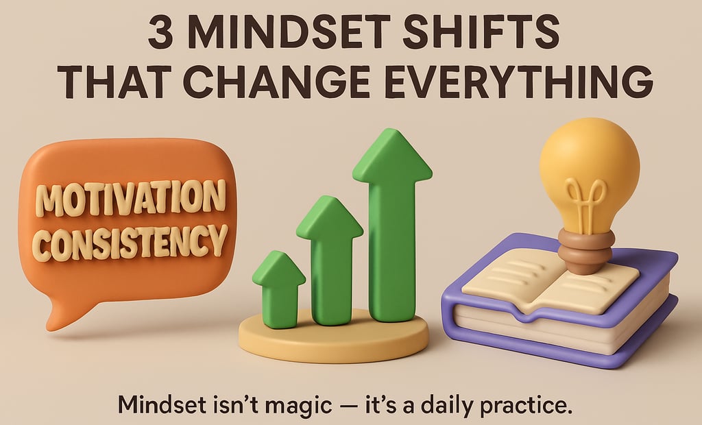 Discover three powerful mindset shifts that help you grow, stay motivated, and transform your life from the inside out.