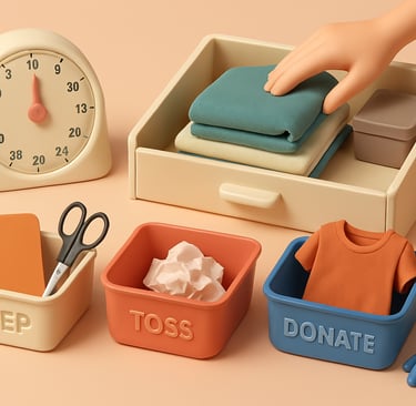 Sort fast. Keep, toss, donate. No overthinking.